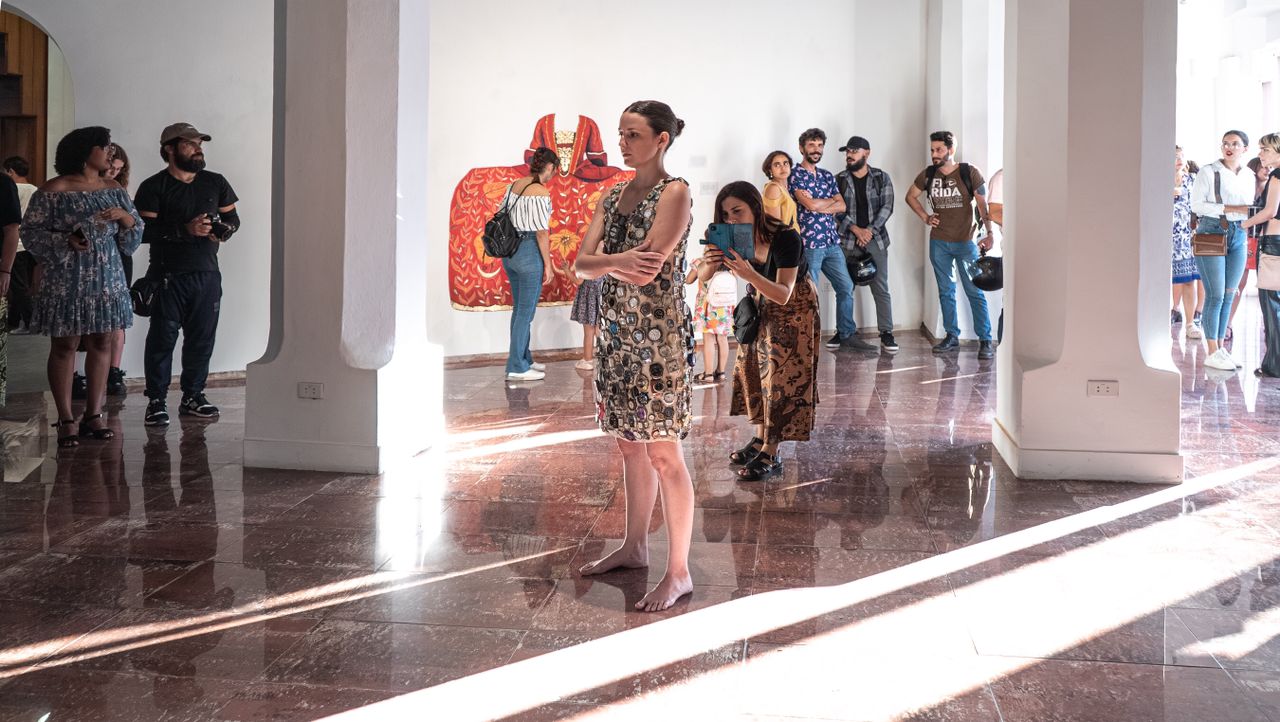 Performance donde la artista aguantó por 24 horas, los 7kg de su vestido “CUBA” compuesto por relojes de pulsa rotos