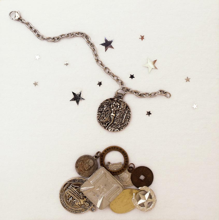 Serie Estado de gracia, 2018. Collage, metal, tela, madera y cristal
