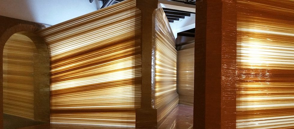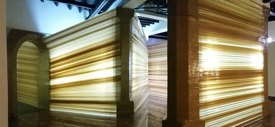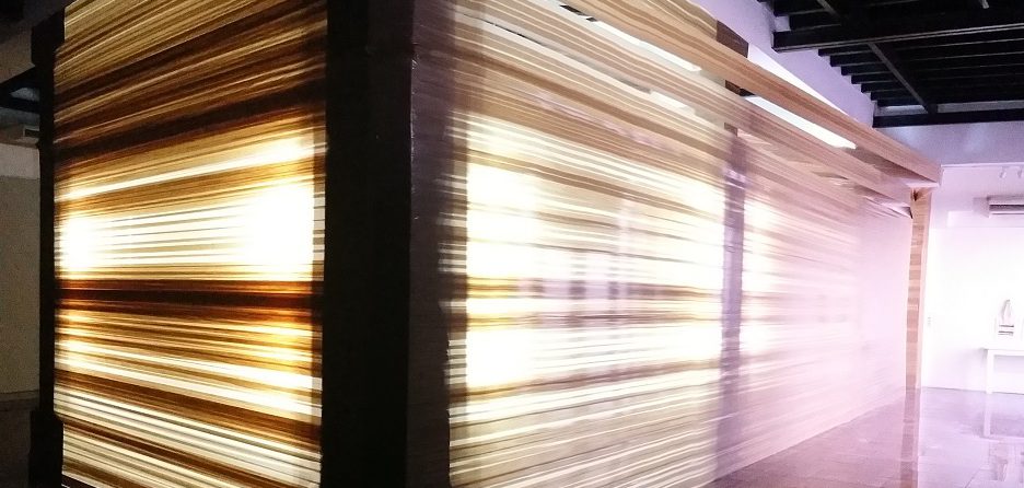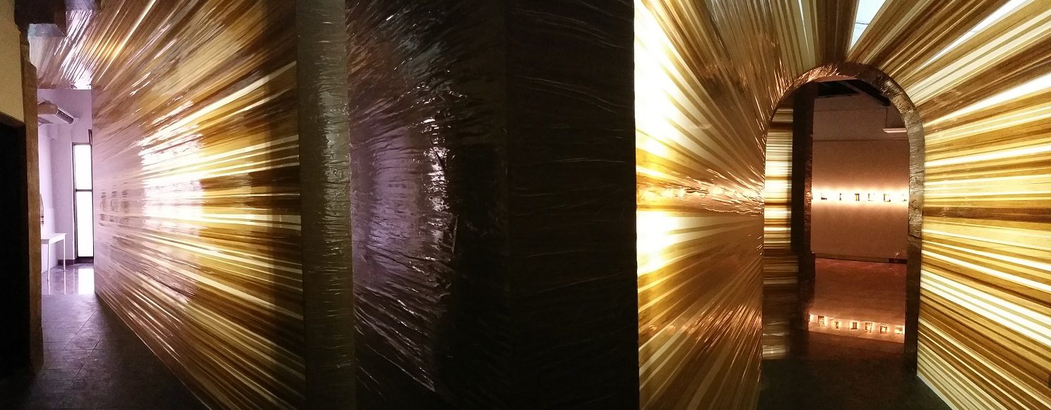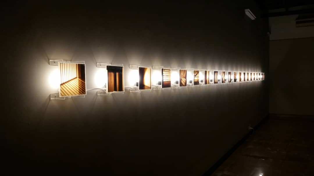 El principio de todo inicia con dos instalaciones en las que su autor privilegia una vez más el tratamiento de la luz, elemento primigenio de la visualidad. Tal empleo destaca principalmente en Resina, con la cual intervino el interior de la sala y que consiste en una especie de muros realizados con cinta adhesiva y luz led. La otra pieza, Septiembre, está compuesta por veinte pequeñas pantallas de luz realizadas con la técnica de acrílico, cinta adhesiva, luz led y resina, elemento este último novedoso en tal tipo de propuesta suya, ya premiado en 2018 durante la 15 Feria Internacional de Arte Contemporáneo Zona Maco de México. Tal procedimiento, dota a sus piezas de una profundidad que burla el carácter bidimensional de la pintura. En ellas, un reiterado componente de su obra, lo autorreferencial, aparece en la recreación del espacio doméstico y en los títulos que les asignó. De modo particular en los que incluye los nombres de su esposa y de su hija: la familia. El principio de todo.