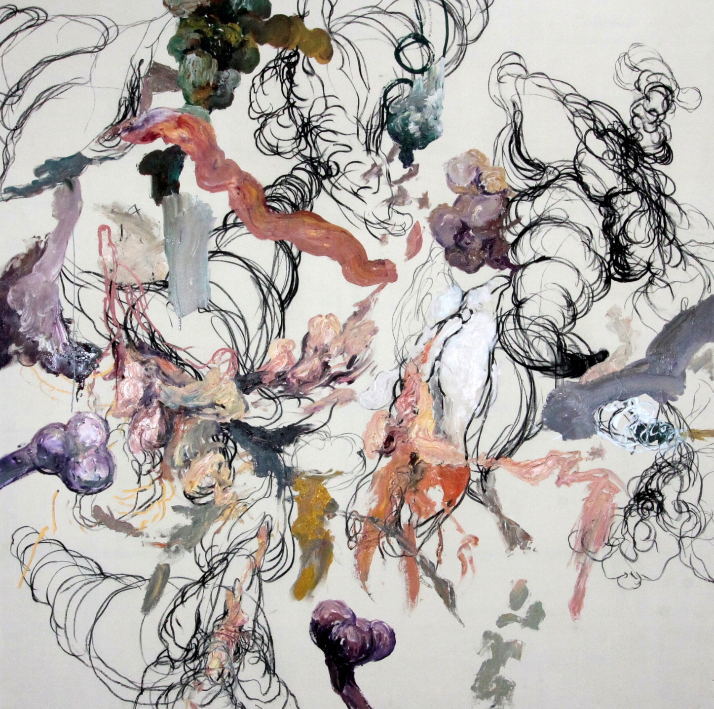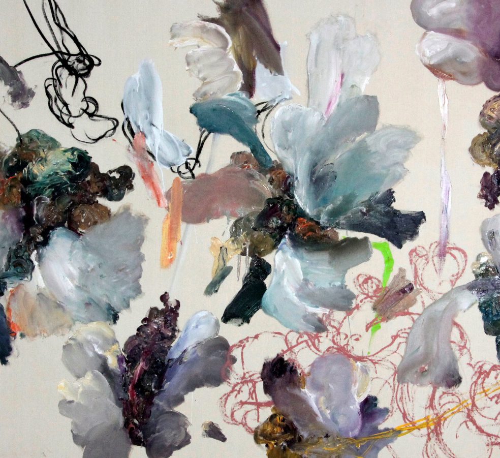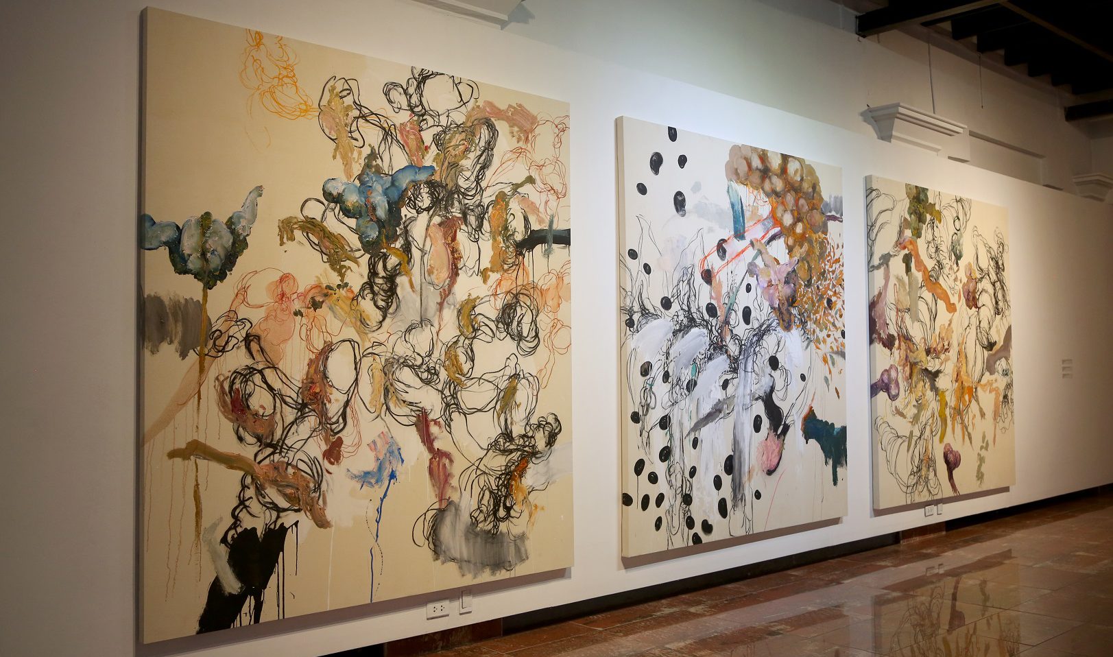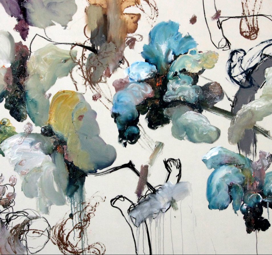 La plasmación vigorosa del gesto pictórico vuelve a sorprender en el trabajo de Ricardo Ríos. Mantiene en esta muestra la referencia a los elementos naturales, al motivo floral, orgánico, esta vez resurgiendo con un tratamiento formal diferenciado que dista de las composiciones abigarradas y barrocas de su obra anterior. La exhibición permite confrontar otros tanteos del color, la forma, el gesto liberado y espontáneo (signos de una nueva manifestación de la emoción) proceso en el que se encuentra inmerso el artista en los últimos años. El resultado visual del conjunto apuesta por el dinamismo, la sensualidad, las formas expandidas que ilusoriamente desbordan los límites de los lienzos, generando todo ello una necesidad de presenciar al artista en plena acción creativa.