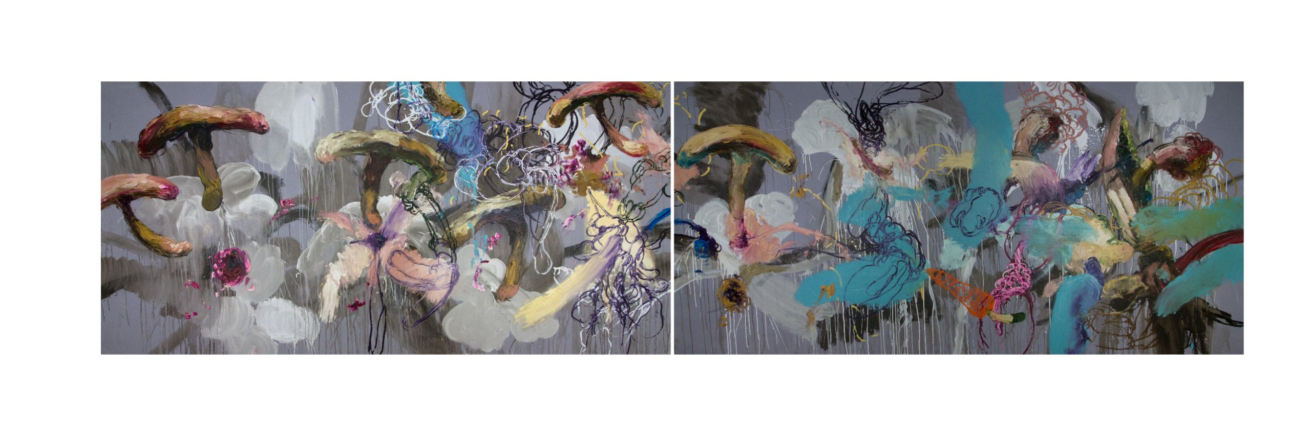 E l platillo preferido de GOYA después de pintar, era hongos sucios, 2019 óleo, acrílico sobre tela 150 x 300 cm cu