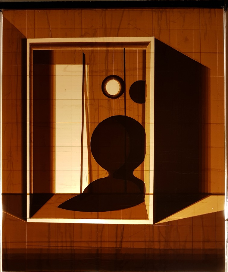 Instalación, acrilico, cinta adhesiva y luz fluorescente 65 x 55 cm