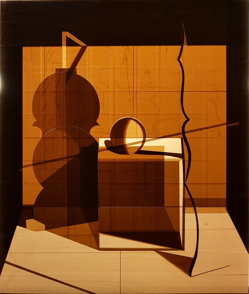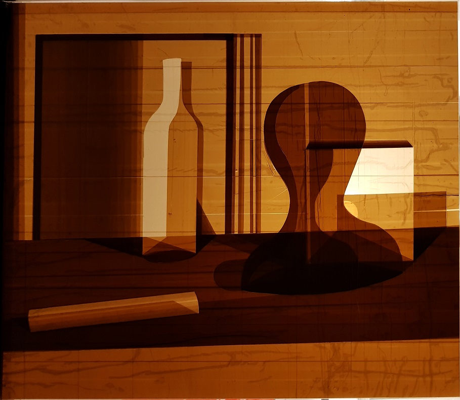 Naturaleza Muerta, De la serie Silencio, 2020 Instalación, acrilico, cinta adhesiva y luz fluorescente 65 x 55 cm