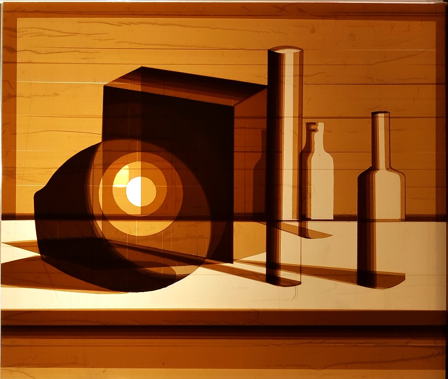 Naturaleza Muerta, De la serie Silencio, 2020 Instalación, acrilico, cinta adhesiva y luz fluorescente 65 x 55 cm